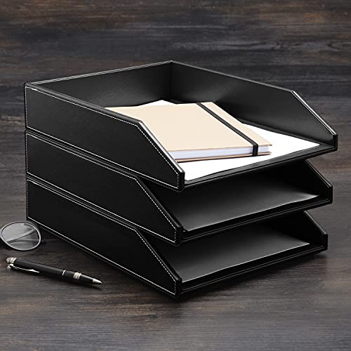 Gallaway Leather Letter Tray Desk Organizer - Premium Pu Leather Tray Perfect for Office Organization, Document Holder Fits A4 Paper, Stackable Drawers for Extra Desk Storage