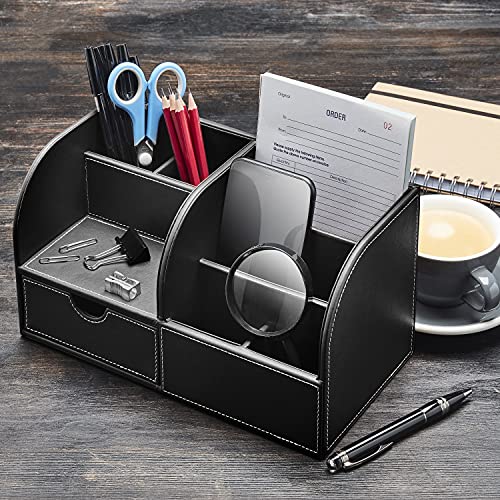 Gallaway Leather Desk Organizer - Office Stationery Storage Box Organizer, Holds Desk Supplies Like Business Card, Pen, Pencil Mobile Phone, Office Accessories