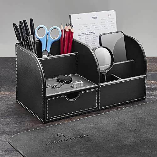 Gallaway Leather Desk Organizer - Office Stationery Storage Box Organizer, Holds Desk Supplies Like Business Card, Pen, Pencil Mobile Phone, Office Accessories
