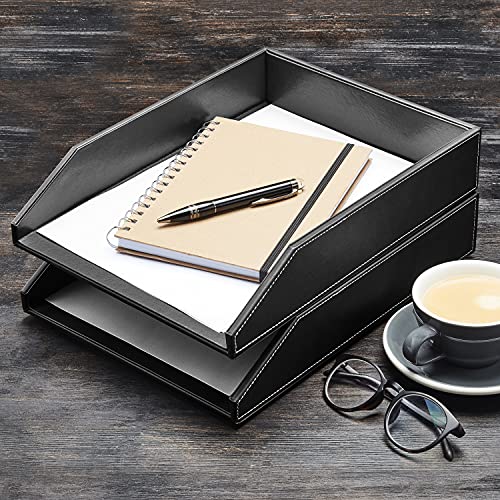 - Elegant Design - our letter tray desk organizer is designed to make your home office or work desk professional with a rich brown leather finish which looks great with our leather desk pad and desk organizer.